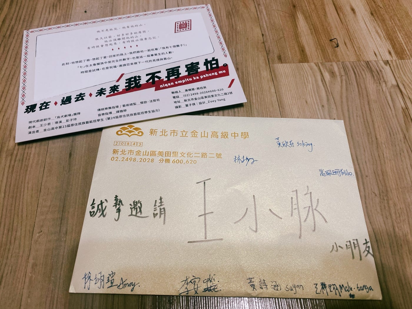 小脉不久前收到了人生第一張「邀請函」。於是,我又再幫小脉跟學校請一次假。這一次,不是因為生病,而是讓她能親眼看見金山高中的哥哥姊姊們的演出。讓我們勇敢的不是逞強,而是真實地看見過去曾經的傷與斷裂。