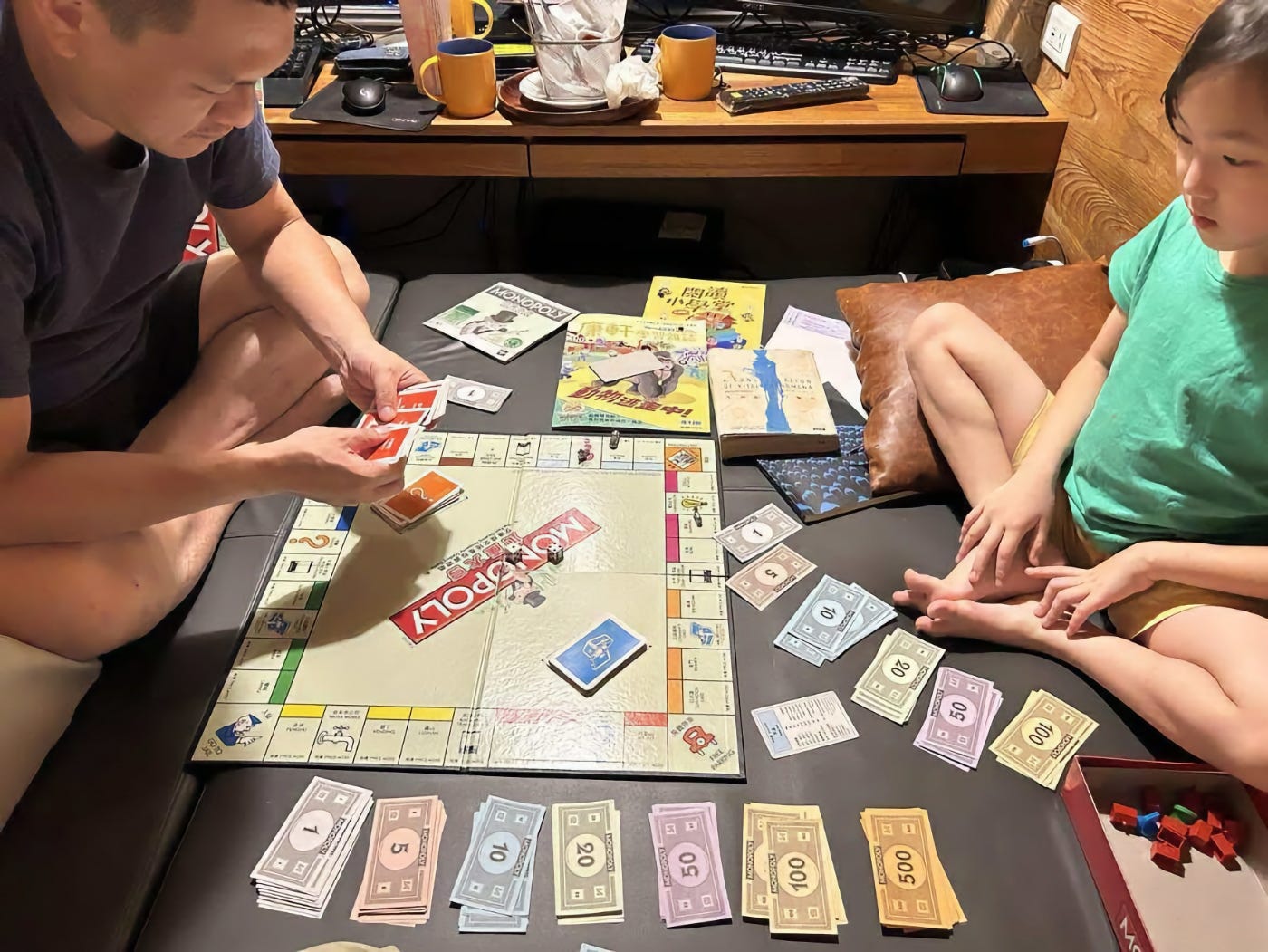 上週末,我提議一家三口去萬年大樓的漫畫店窩著。小小包廂裡,小脉看自己帶去的兒童雜誌,我在學西班牙文,只有少君乖乖(?)看漫畫。然後以古早味的「大富翁」桌遊收尾。雖然空間真的好小,我們三個一直壓到對方,不停在換位子。這種在家裡也可以的事,去擠一個小包廂有點笨。但是,愛在空間裡滋長。